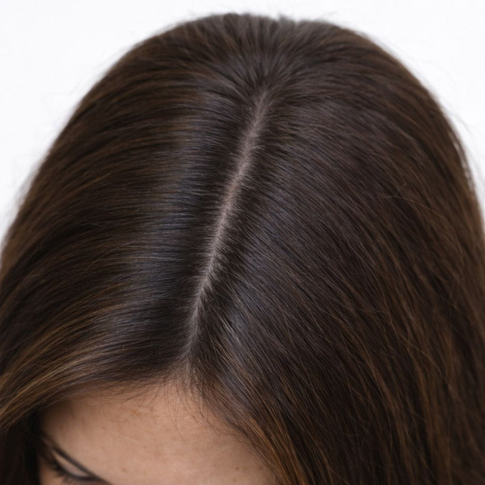 Nuestra fórmula actúa activando el color del cabello, ayudando a disimular las canas y devolviéndole brillo, uniformidad y una apariencia cuidada, sin el desgaste de la tintura tradicional.